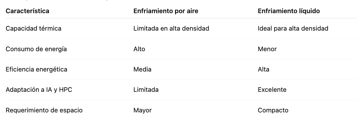 Con el aumento de la carga térmica generada por aplicaciones de alta densidad, inteligencia artificial (IA) y cómputo de alto rendimiento, las soluciones tradicionales de enfriamiento por aire ya no son suficientes.